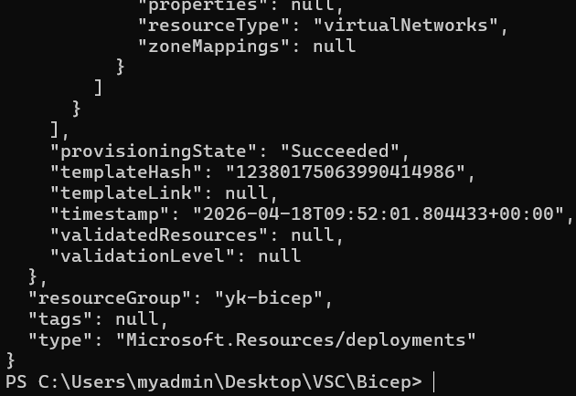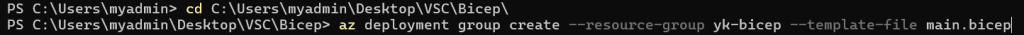 az deployment group create --resource-group yk-bicep --template-file main.bicep