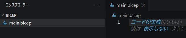 次に適当なフォルダを作って「main.bicep」というファイルを作る。