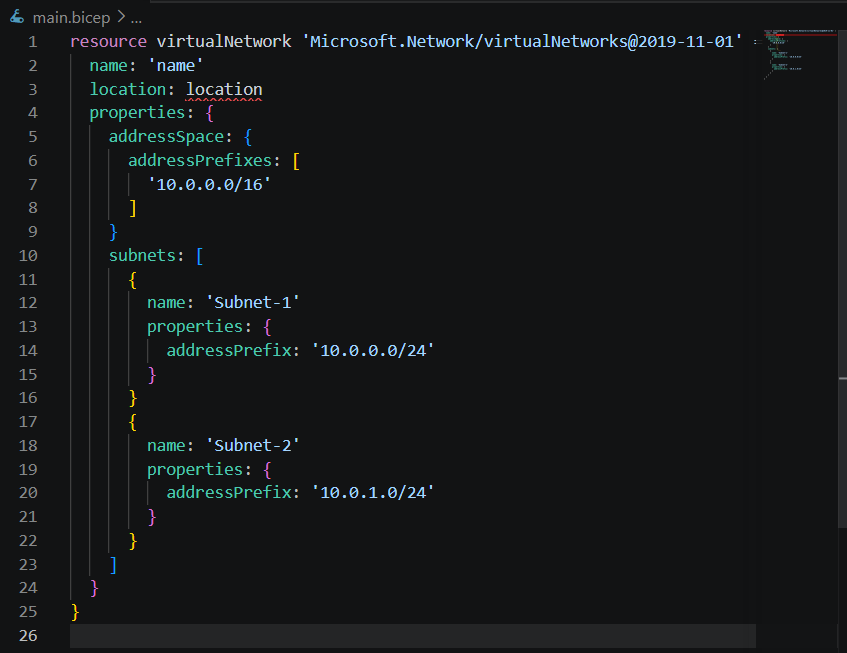 このファイルを使って試しに仮想ネットワークをデプロイしてみることにする。